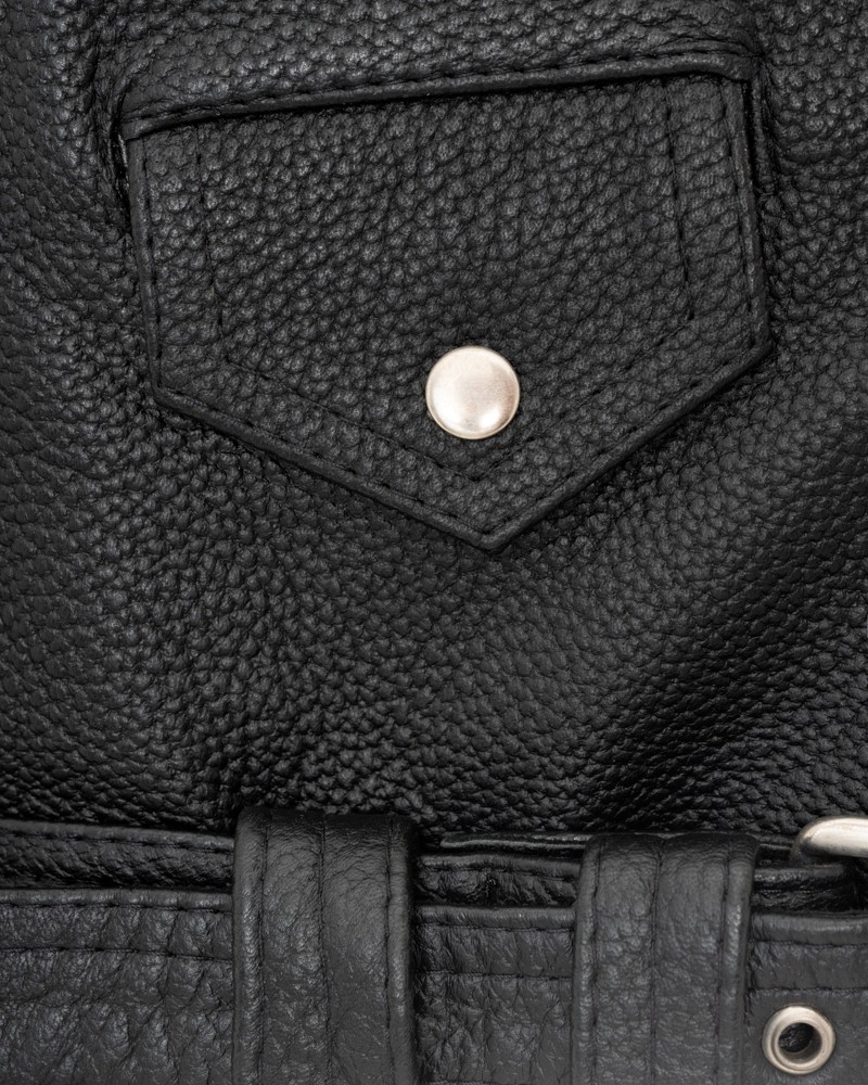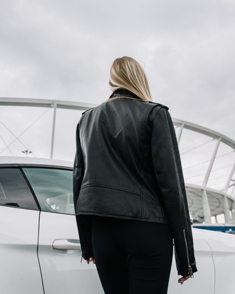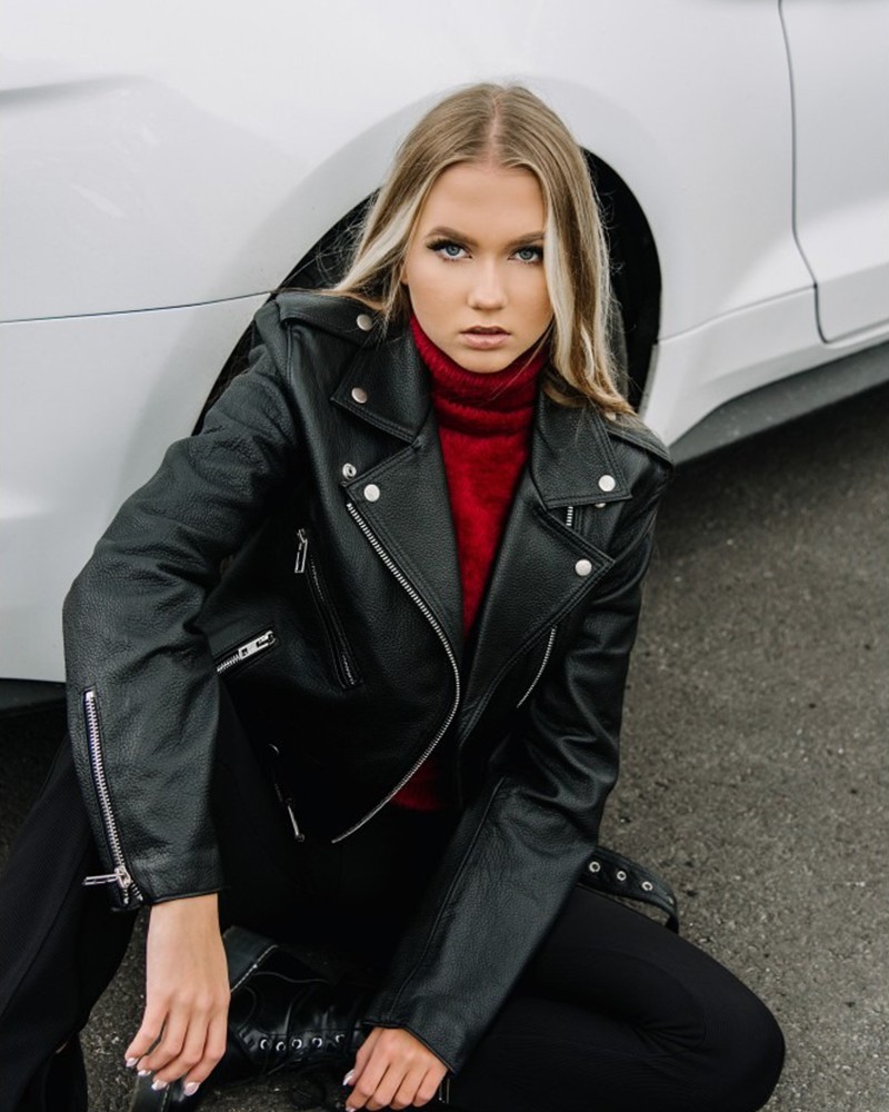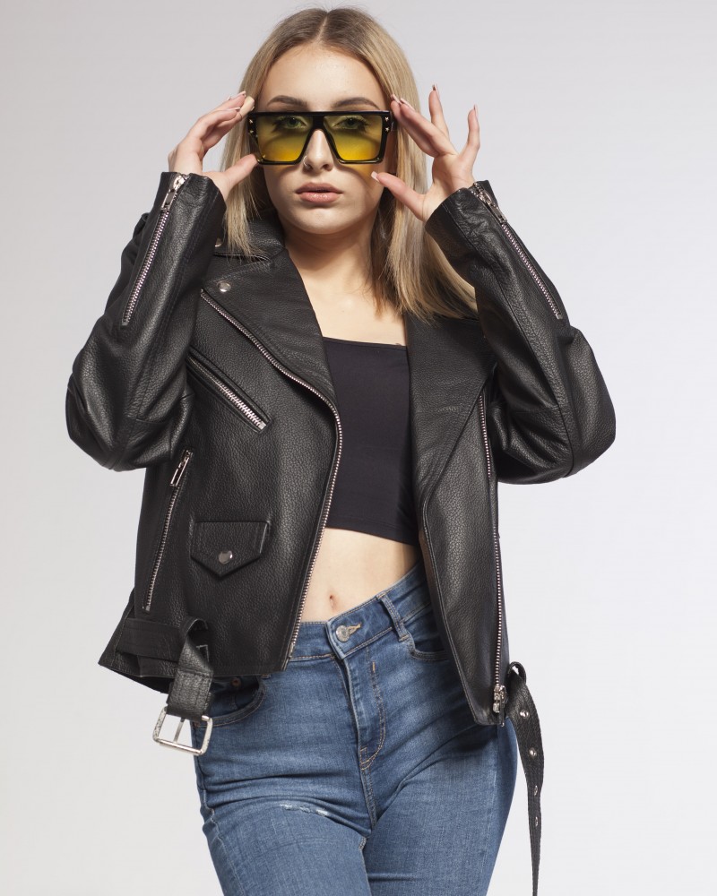 Bikerjacken Damen Aleksa ist ein zu 100% polnisches Projekt, gefertigt aus natürlichem Rindsleder vom Typ Nevada, das ihr sowohl außergewöhnliche Strapazierfähigkeit und Widerstandsfähigkeit gegen mechanische Einwirkungen als auch einzigartigen Glanz verleiht. Der gerade Schnitt in Taillenlänge eignet sich ideal für viele Stylings und betont sanft die Kurven der weiblichen Silhouette. Die Jacke wird mit einem leicht asymmetrisch eingenähten Reißverschluss geschlossen, der nicht nur die tägliche Nutzung erleichtert, sondern auch positiv auf ihr Erscheinungsbild wirkt. Unten befindet sich ein Gürtel mit eleganter Schnalle, der zur freien Taillenregulierung dient und besonders nützlich ist, wenn du eine dickere Kleidungsschicht darunter tragen möchtest.