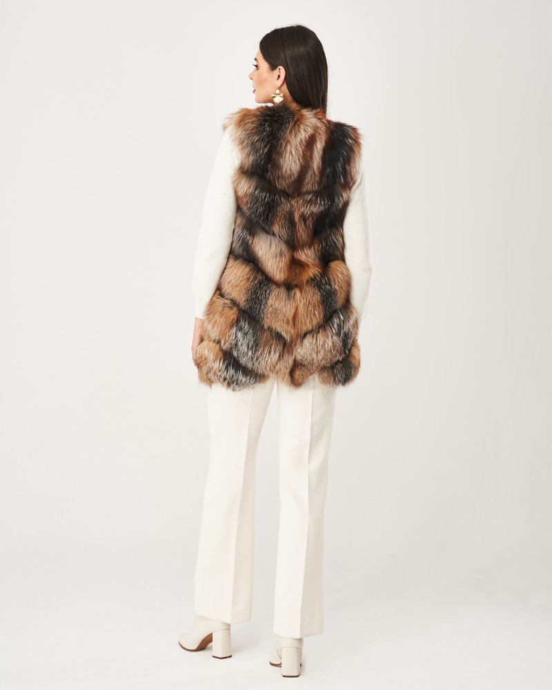 • Die abgebildete Damen Fellweste ist Mehrfarbig