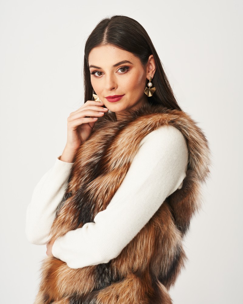 Die Damen Fellweste aus Fuchspelz Hawana ist ein elegantes und zeitloses Design, gefertigt aus hochwertigem Fuchspelz, das Ihnen ein stilvolles Erscheinungsbild verleiht, mit flauschiger Wärme umhüllt und Ihren unverwechselbaren Stil unterstreicht. Die Fellweste aus natürlichem Fuchspelz ist ein originelles und funktionales Oberbekleidungsstück, und die hervorragende Qualität der für die Herstellung verwendeten Materialien sorgt dafür, dass das Modell Ihnen viele Jahre dienen wird. Neben einem attraktiven Aussehen garantiert die Weste auch optimalen thermischen Komfort und Schutz vor Kälte.