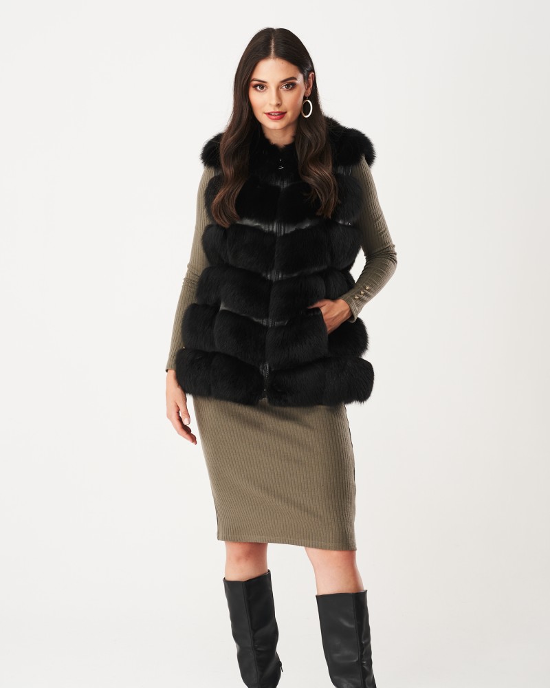 Die Damen Fellweste Riviera aus natürlichem Fuchspelz ist ein zeitloses Kleidungsstück, das es Ihnen ermöglicht, sich in jeder Situation luxuriös und elegant zu fühlen, und gleichzeitig außergewöhnliche Bewegungsfreiheit sowie hohen thermischen Komfort bietet. Das Modell unterstützt die Kreation vieler interessanter Outfits – sowohl für den Alltag als auch für elegantere Anlässe.