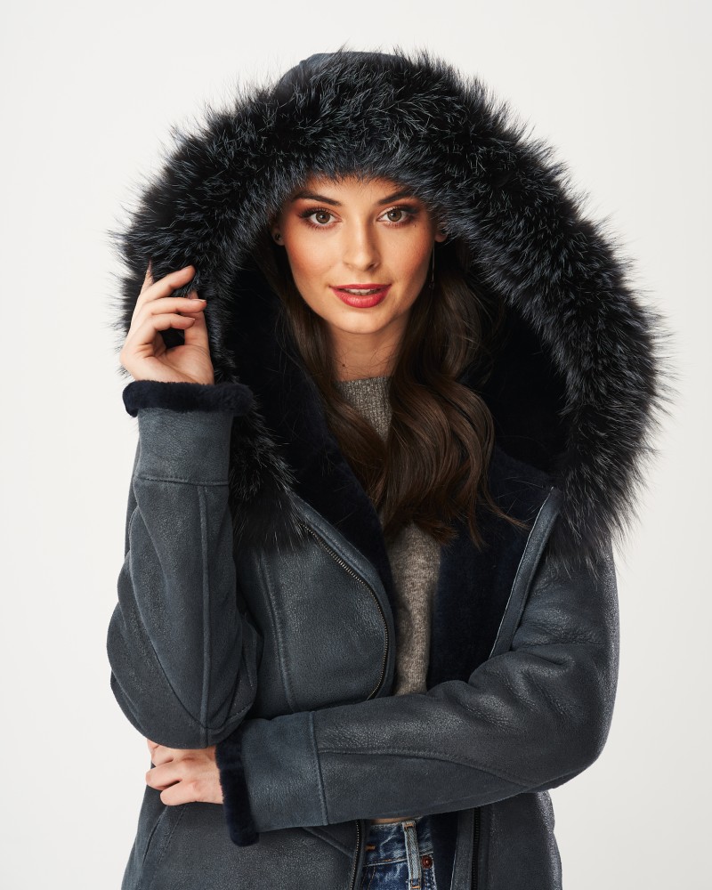 Die Damen Lammfelljacke Domi reicht bis zu den Hüften und garantiert ein hervorragendes Aussehen dank des leicht taillierten Schnitts sowie der modischen Nähte, die die Silhouette optisch verschlanken und dir in jeder Situation ein hervorragendes Wohlbefinden bieten. Der schräg eingearbeitete Reißverschluss arbeitet flüssig und zuverlässig und schützt den Körper ideal vor Wind und Regen. Die warme, großzügige Kapuze ist mit Naturfuchs besetzt, was nicht nur ein perfektes Aussehen, sondern auch zusätzlichen Schutz vor Kälte bietet. Das angenehm weiche Fell lädt dazu ein, sich hineinzukuscheln, wenn das Wetter wirklich ungemütlich wird.