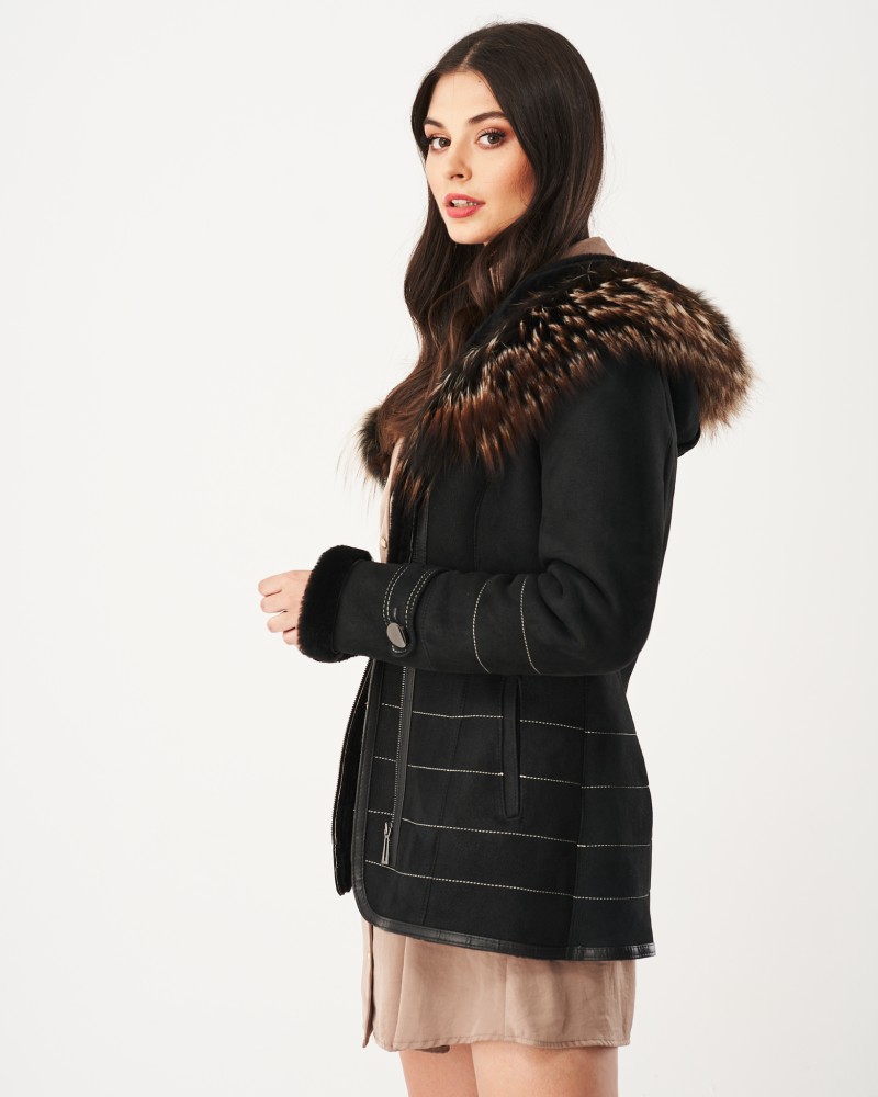 Die Damen Lammfelljacke Panama ist ein außergewöhnliches Modell, dessen Herzstück die Kapuze mit Natur-Raccoon-Besatz bildet. Sie zieht Aufmerksamkeit auf sich und fasziniert und lädt ihre Trägerin ein, sich bei Frost und schlechtem Wetter in das weiche Fell zu kuscheln. Das Modell ist mit einem flüssig laufenden Reißverschluss aus Edelstahl ausgestattet. Zwei praktische Seitentaschen verleihen ihm zusätzliche Funktionalität und Zweckmäßigkeit. Die Verwendung von natürlichem Lammfell in der Herstellung sorgt dafür, dass die Jacke ideal für Herbst und Winter geeignet ist, da dieses Material äußerst widerstandsfähig ist und keinerlei Witterungseinflüsse fürchtet – weder Frost noch Schnee können ihm etwas anhaben, er wird weder nass noch beschädigt.