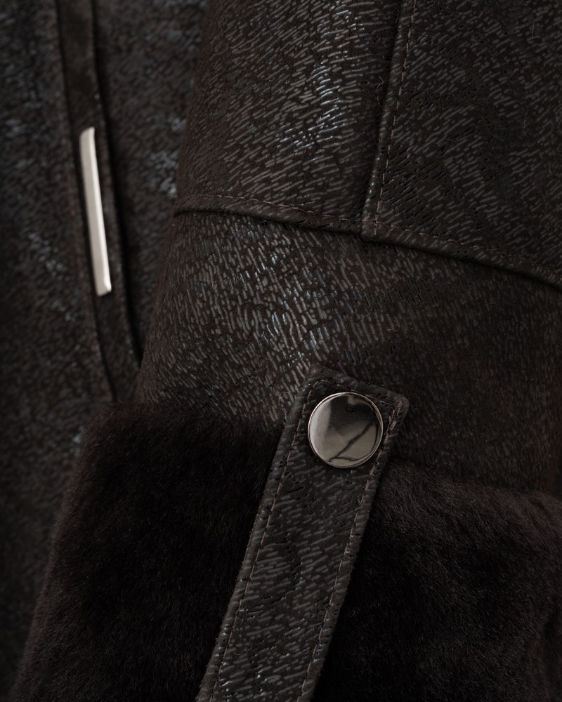 Damen Lammfellmantel Cleo wird mit einem beidseitigen Reißverschluss geschlossen, der Komfort bei der Nutzung und hervorragende Körperisolierung gegen Kälte garantiert. Die schlichte Schnittform und die bis zur Mitte des Oberschenkels reichende Länge ermöglichen Bewegungsfreiheit und Bequemlichkeit in jeder Situation. Der Lammfellmantel zeichnet sich durch ein originelles, auffälliges Muster aus, das ihn aus der Menge hervorhebt und die Umgebung inspiriert.