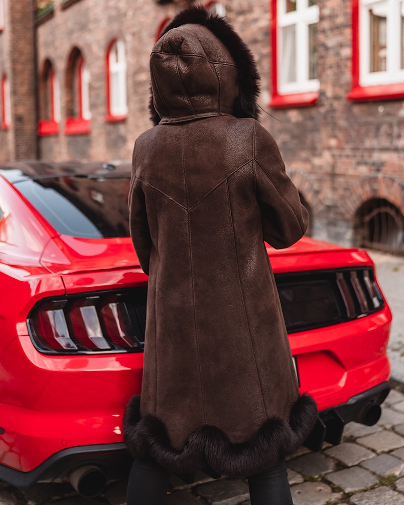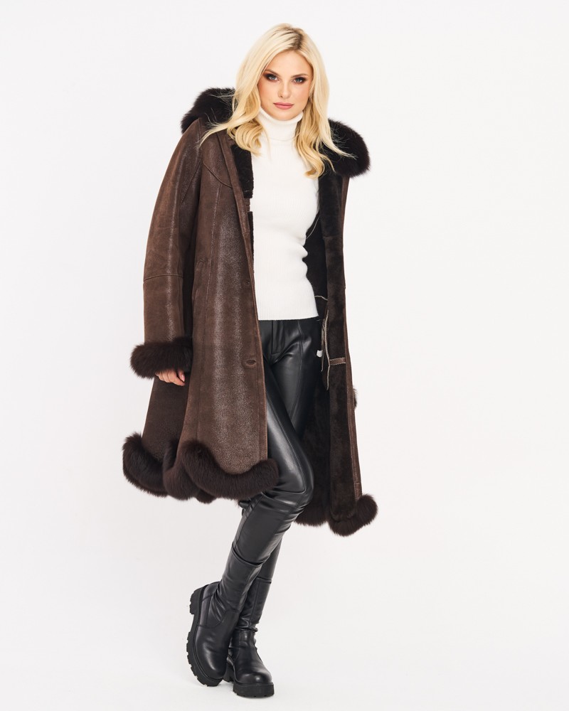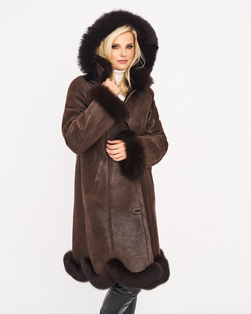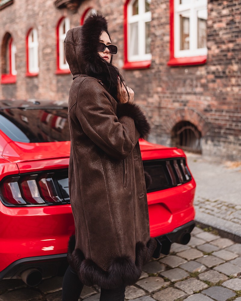 Der natürliche Damen Lammfellmantel Gaga wurde aus hochwertigem, 100% natürlichem Schafsleder gefertigt, das als das wärmste und strapazierfähigste Material seiner Art auf dem Markt gilt. Schafsleder bietet nicht nur Wärme und Komfort an Wintertagen, sondern hilft auch bei Rücken- und Gelenkerkrankungen, lindert Schmerzen, wirkt wärmend und verursacht dabei keine Allergien. Unser Modell begeistert mit einem originellen Design, das vor allem durch Einsätze aus natürlichem Fuchs geprägt ist, die an der Kapuze, den Ärmelmanschetten und am unteren Rand in einer fantasievollen, einzigartigen Form angeordnet wurden. Diese originelle und zugleich modische Ausführung sorgt dafür, dass sich der Mantel noch angenehmer trägt und maximalen Wärmekomfort und Bequemlichkeit bietet.