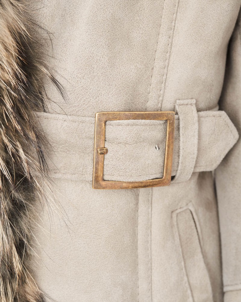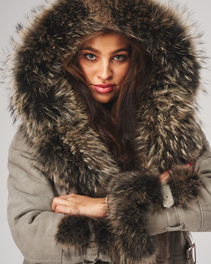 Damen Lammfellmantel Karen hell ist unser Bestseller im Schnitt eines über die Hüfte reichenden Mantels, der die Figur optisch schlank erscheinen lässt und ihr einen unverwechselbaren Charme verleiht. Bei diesem Modell vereint sich außergewöhnliches Design mit Praktikabilität, weshalb der Designer hier nicht an funktionalen und zugleich zeitlosen Lösungen gespart hat. Der Lammfellmantel wird mit einem reibungslos arbeitenden Reißverschluss und Knöpfen geschlossen, die unter einer Einfassung aus natürlichem Jutefell verborgen sind. In der Taille befindet sich ein Gürtel mit Schnalle, der eine präzise Anpassung des Umfangs ermöglicht, um ihn besser an die Figur anzupassen. Die weiche Kapuze und die bequemen Seitentaschen sorgen dafür, dass das Kleidungsstück noch mehr Tragekomfort bietet.
