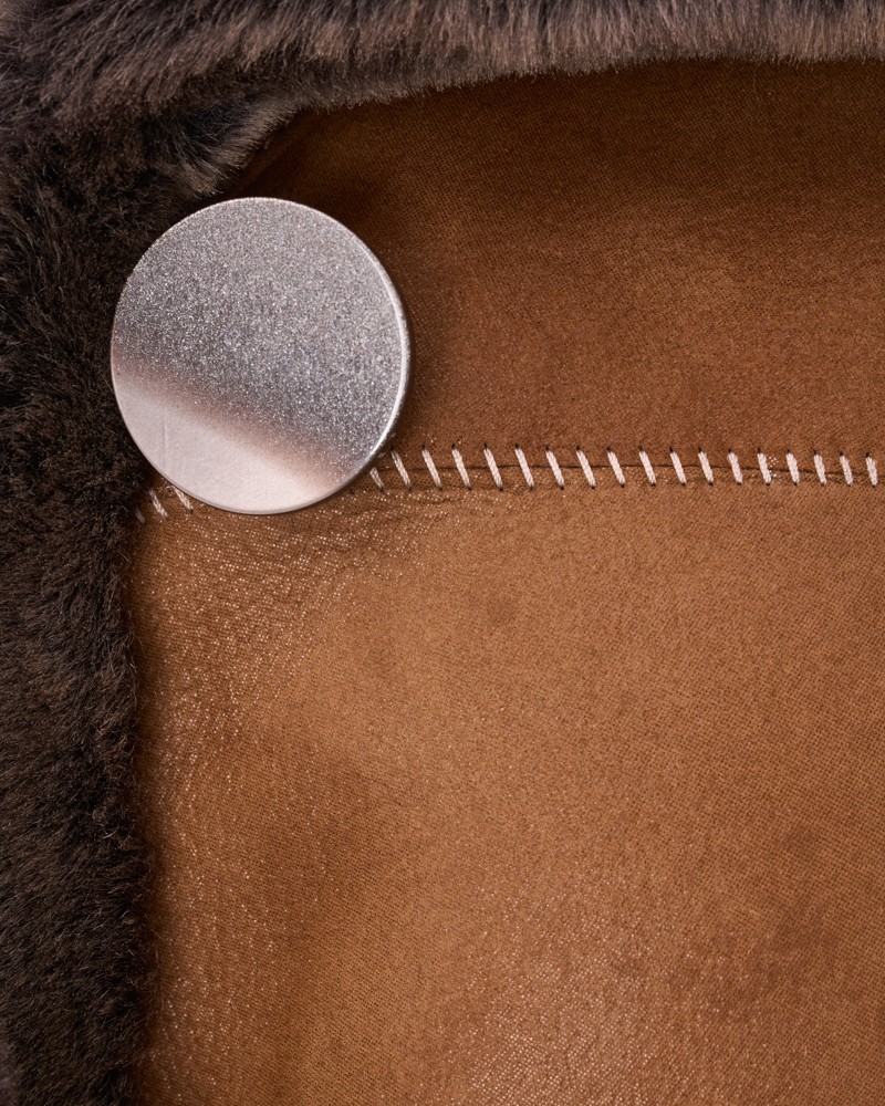 Der natürliche Damen Lammfellmantel London wird mit einer Reihe fest angenähter, stabiler Knöpfe geschlossen. Praktische Seitentaschen verleihen ihm Funktionalität, und kleine Schlitze an den Seiten am unteren Saum erhöhen den Tragekomfort, indem sie die Bewegungsfreiheit steigern. Faszinierende, farblich kontrastierende Nähte ergänzen das Design perfekt, ziehen Blicke auf sich und heben das Modell aus der Masse hervor.