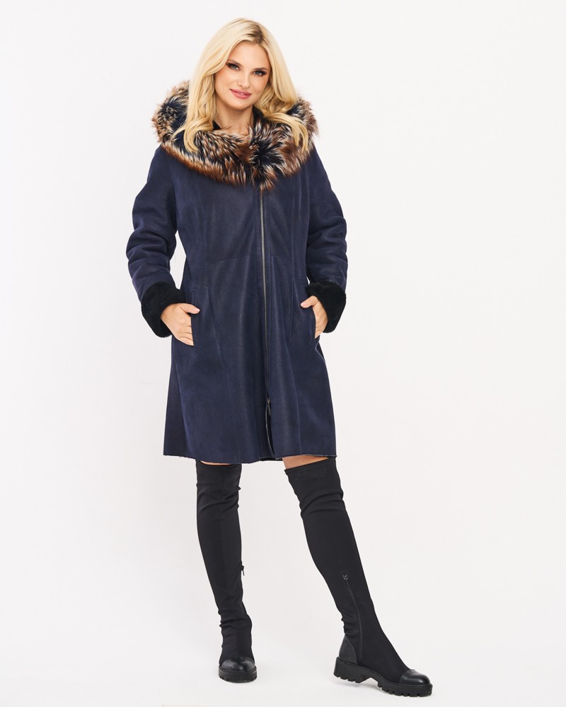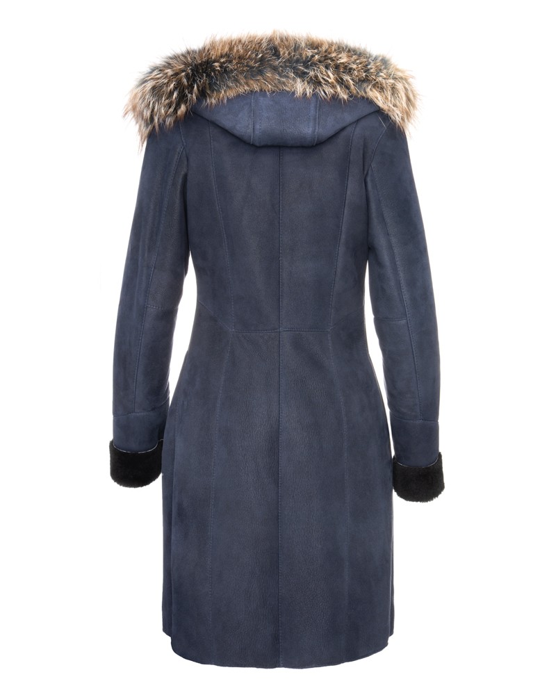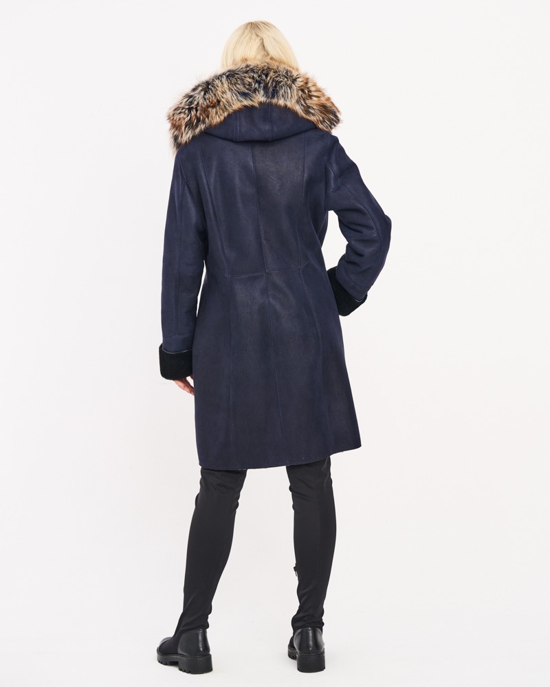 • Der abgebildete Damen Lammfellmantel ist Marineblau
