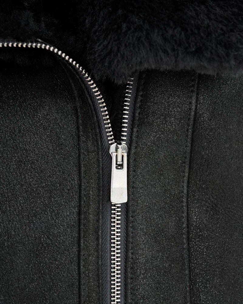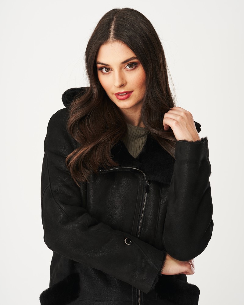 • Der abgebildete Damen Lammfellmantel ist Schwarz