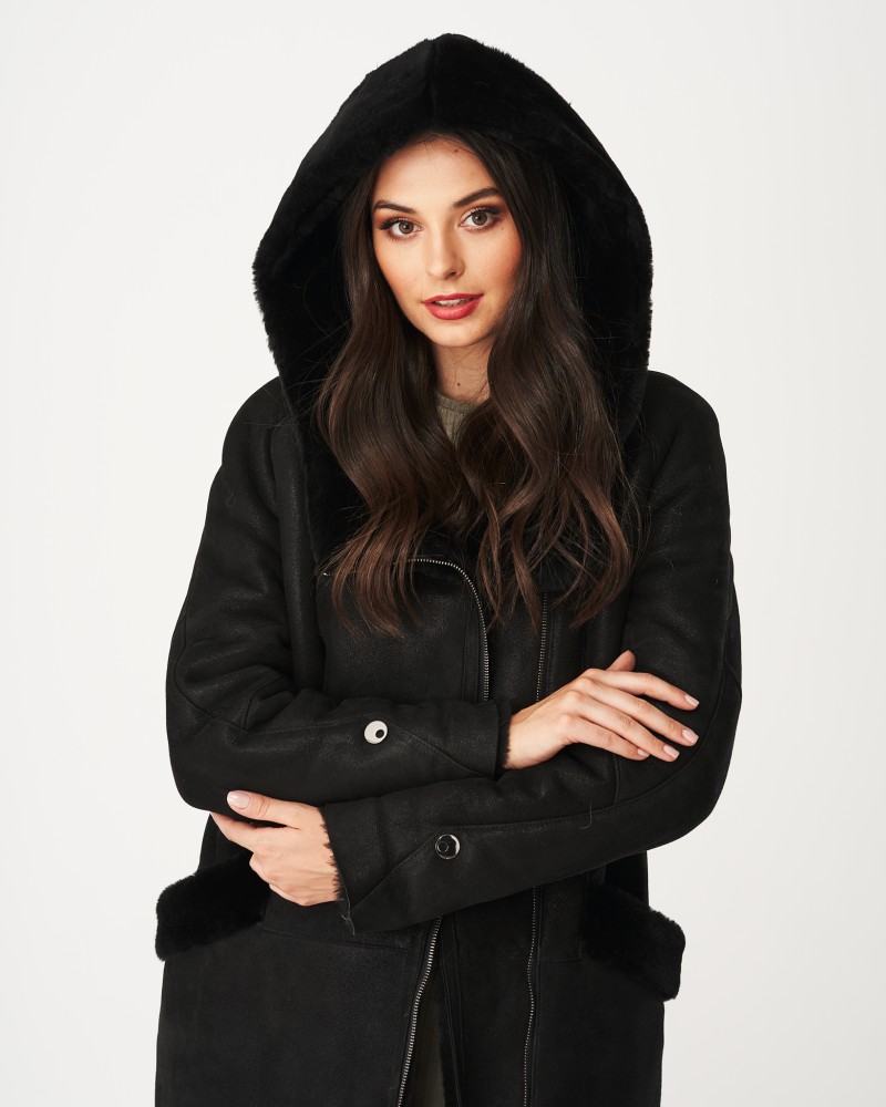 Damen Lammfellmantel Tokio ist ein Modell, bei dem der Hersteller besonderen Wert auf Details gelegt hat. Die warme Kapuze und die Patten der praktischen Seitentaschen wurden mit weichem, angenehm zu berührendem Fell versehen, das farblich harmonisch zum Gesamtdesign passt. An den Ärmeln und den dezenten Seitenschlitzen befinden sich hübsche Knöpfe, die das Design des Modells dezent beleben. Die Verwendung von hochwertigem, vollständig natürlichem Schaffell macht den Lammfellmantel perfekt für die kältesten Herbst- und Wintertage, da er nicht nur vor Frost, sondern auch vor Wind und Schnee hervorragend schützt.