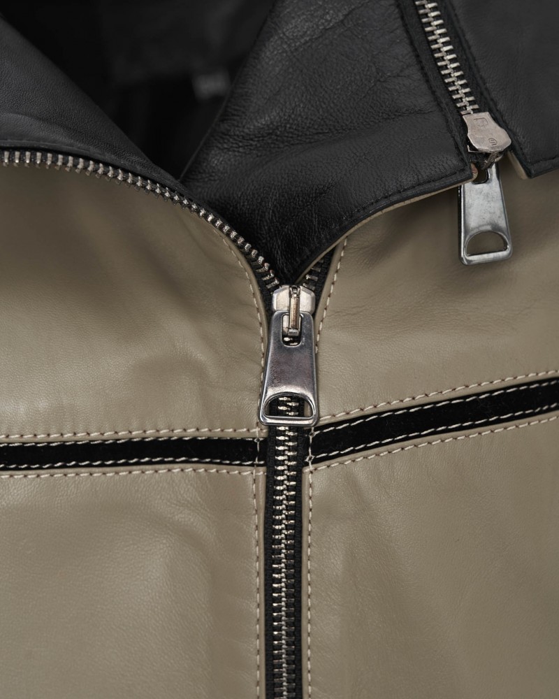 Damen Lederjacken Hinda, hergestellt aus weichem, natürlichem Lammleder, wird durch attraktive Einsätze aus demselben Leder in kontrastierender Farbe ergänzt, was ihr einen unverwechselbaren Charakter verleiht. Das Modell zeichnet sich durch einen asymmetrischen Reißverschluss und praktische Taschen aus, die ihm einen originellen, leicht lässigen Look verleihen. Der leicht taillierte Schnitt und die hüftlange Form betonen die Silhouette perfekt. Damen Lederjacken Hinda vereint Eleganz mit Zeitlosigkeit und bietet Frauen eine stilvolle und funktionale Wahl für jeden Anlass und jede Jahreszeit.