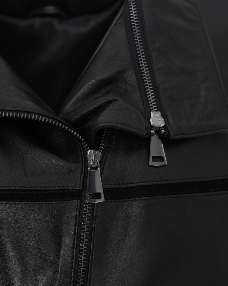 Damen Lederjacken Hinda in Schwarz wurde aus natürlichem Lammleder gefertigt und mit Einsätzen aus demselben Leder in kontrastierender Farbe veredelt. Dies schafft ein unverwechselbares Design des Modells und betont seinen einzigartigen Charakter. Die Jacke ist mit einem leicht schräg eingesetzten Reißverschluss versehen, ebenso wie die praktischen Seitentaschen. Der leicht taillierte Schnitt und die bis zur Hüfte reichende Länge sorgen dafür, dass das Modell perfekt auf der Figur liegt und der Trägerin einen unverwechselbaren Stil und Klasse verleiht.
