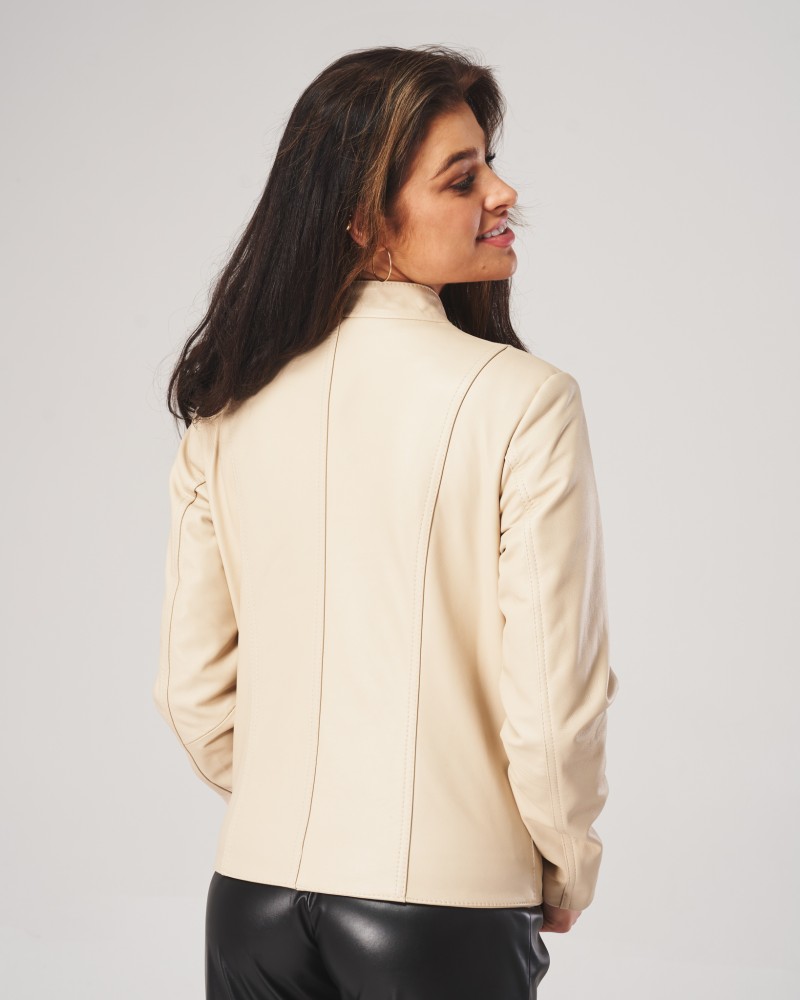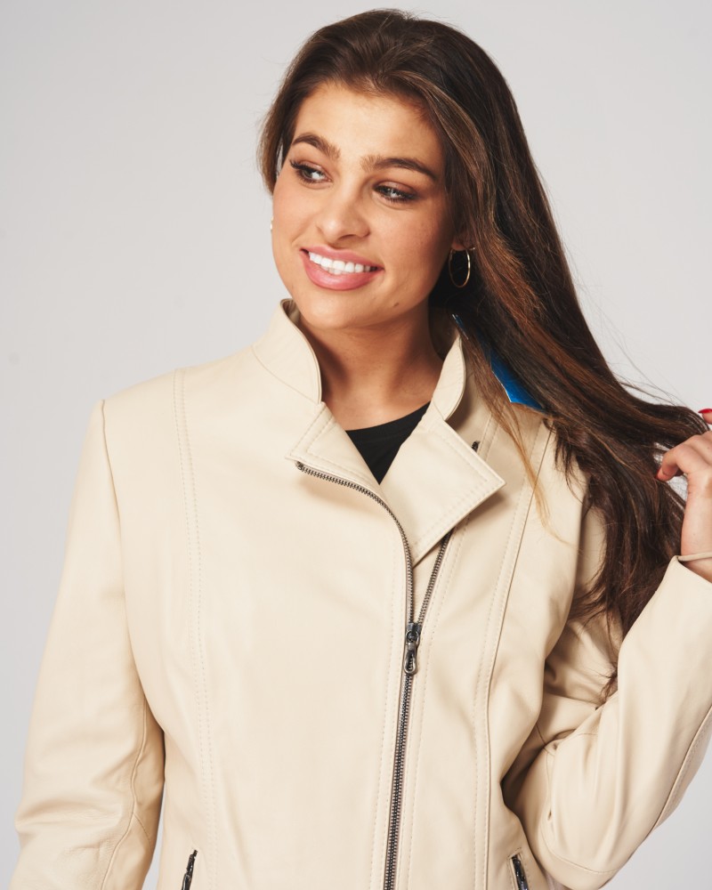 Damen Lederjacken Ingrid wird Frauen gefallen, die höchste Verarbeitungsqualität, Klasse und einen zeitlosen Look schätzen. Das Modell wurde aus beeindruckend weichem, 100% natürlichem Lammleder gefertigt. Dieses Material verliert über Jahre hinweg nicht seine außergewöhnlichen thermischen und ästhetischen Eigenschaften und bietet dabei einzigartigen Tragekomfort und Bequemlichkeit in jeder Situation. Der leicht diagonal eingesetzte Reißverschluss aus Edelstahl ist nicht nur ein praktischer Verschluss, sondern verleiht dem Design auch einen besonderen Charakter.