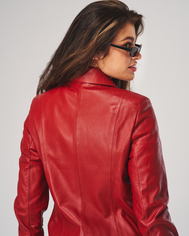 Damen Lederjacken Laila hat einen einfachen Schnitt, der bis zu den Hüften reicht, und dank der interessanten vertikalen Nähte auf der Rückseite ist sie leicht tailliert, wodurch sie die weibliche Silhouette wunderschön betont. Sie wurde in Polen aus hochwertigem, natürlichem Lammleder gefertigt, äußerst weich und angenehm im Griff. Dieses Leder zeichnet sich zudem durch hohe Beständigkeit gegen mechanische Beschädigungen und widrige Wetterbedingungen aus, weshalb das Modell sicherlich über viele Saisons hinweg tragbar sein wird.