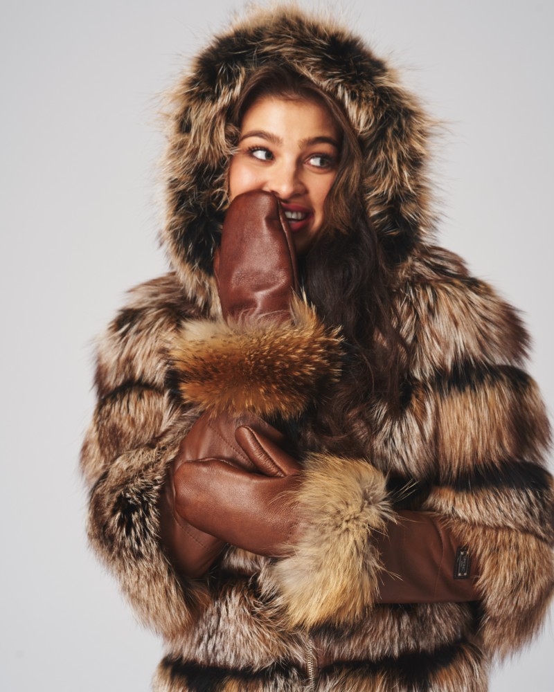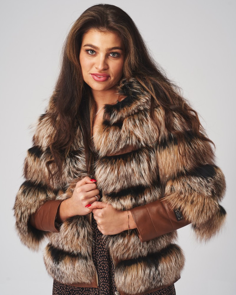 Damen Lederjacken Omena wurde aus natürlichem Lammleder gefertigt, das von sich aus einzigartige Haltbarkeit, atemberaubendes Aussehen und elegante Klasse bietet. Als ob das nicht genug wäre, hat der Designer sie mit wunderschönem Waschbärpelz veredelt. Dieser verleiht reiche Textur und außergewöhnliche Weichheit, wodurch die Jacke zur idealen Wahl für Frauen wird, die einen markanten Akzent in ihrer Wintergarderobe suchen und gleichzeitig ihren individuellen Stil und ihre Liebe zu hochwertigen Materialien unterstreichen.