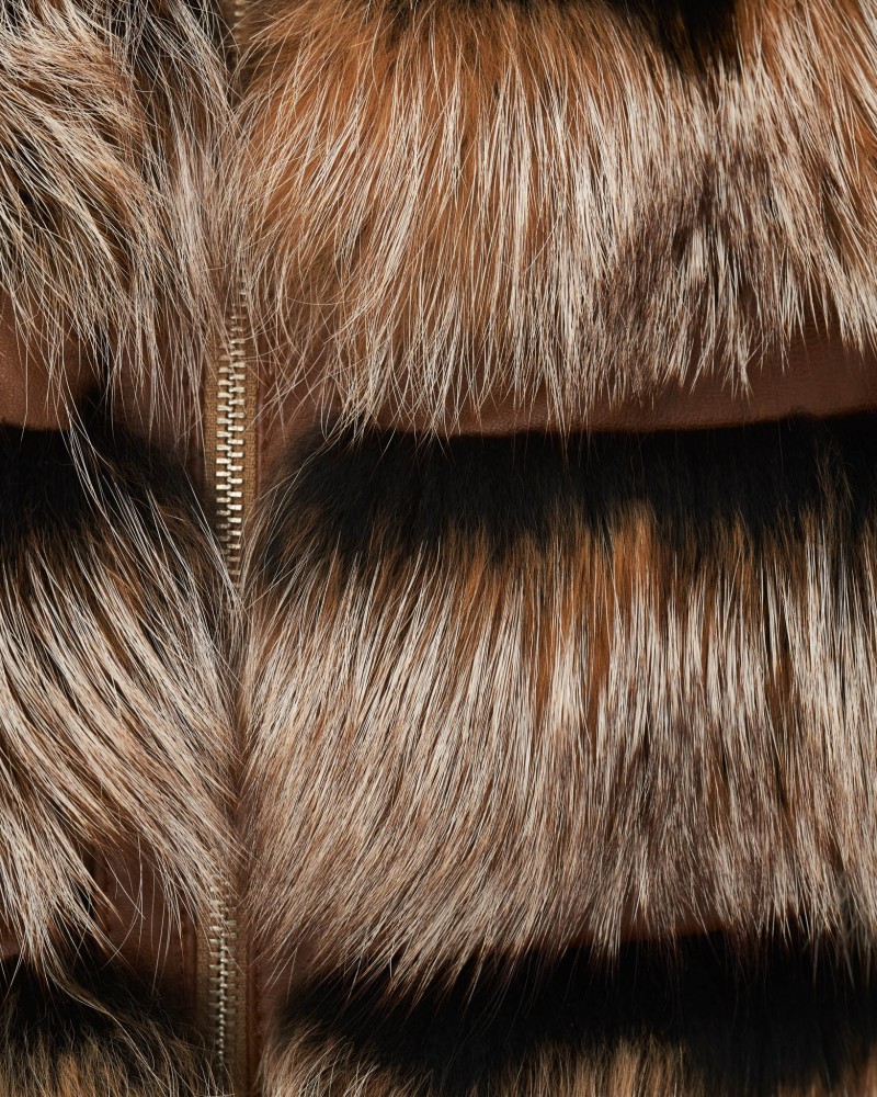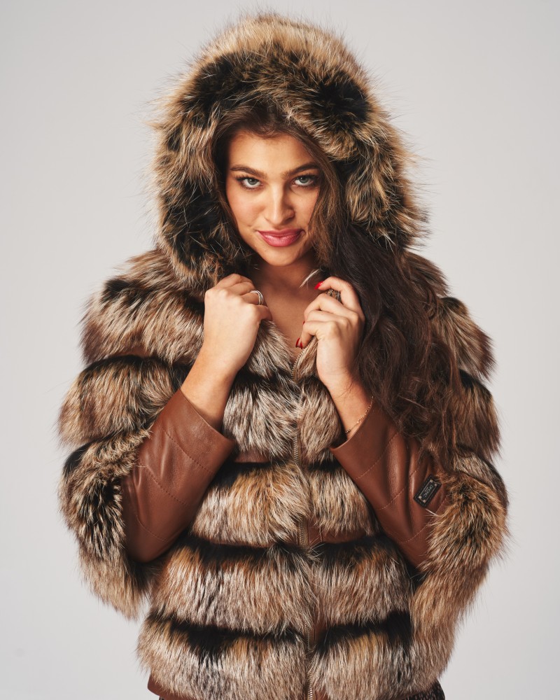 Damen Lederjacken Omena besteht nicht nur aus Lammleder und Waschbärpelz, sondern auch aus einzigartigen Glattleder-Details, die besonders an den Ärmeln sichtbar sind. Sie verleihen dem Modell einen besonderen Charakter und fügen noch mehr Eleganz und Klasse hinzu. Die Jacke ist mit einer praktischen Kapuze ausgestattet, die ideal vor Kälte und Wind schützt. Der solide Reißverschluss aus widerstandsfähigem Edelstahl vervollständigt das Gesamtprojekt perfekt.