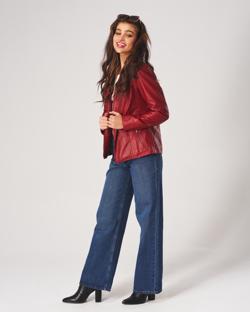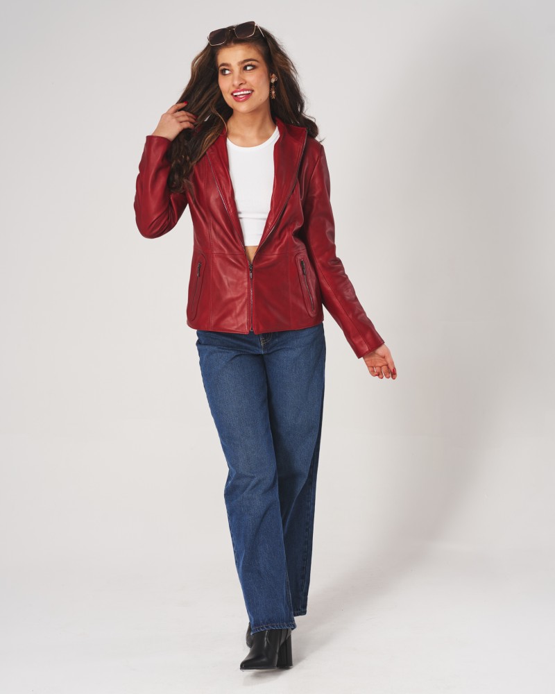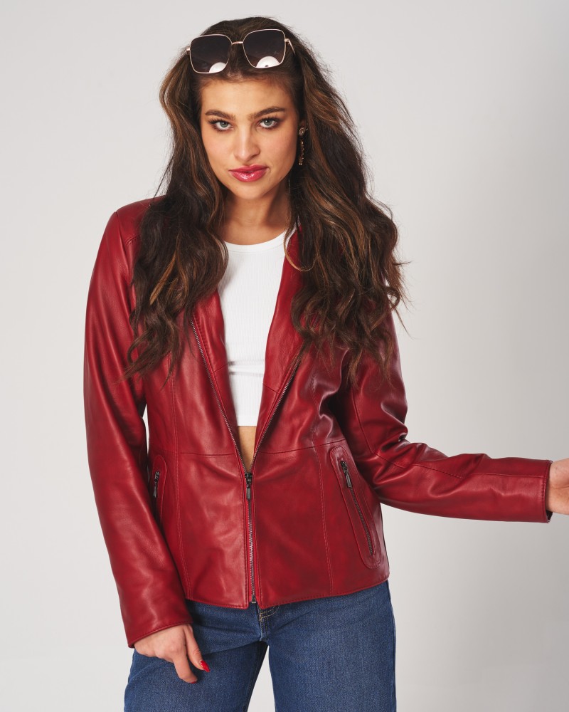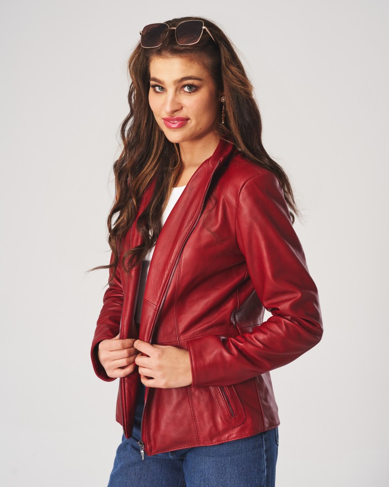 • Die abgebildete Damen Lederjacke ist Rot