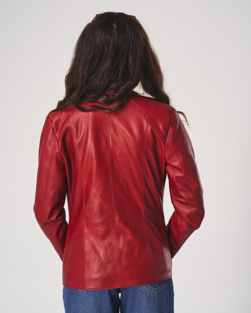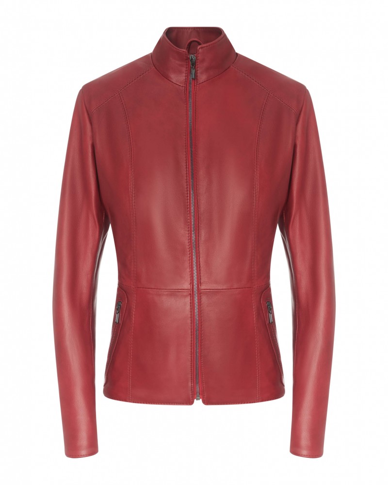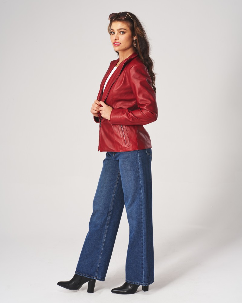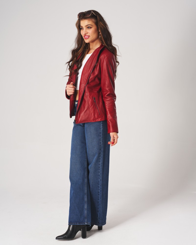 • Die abgebildete Damen Lederjacke ist Rot