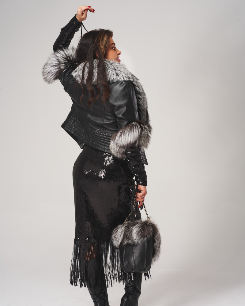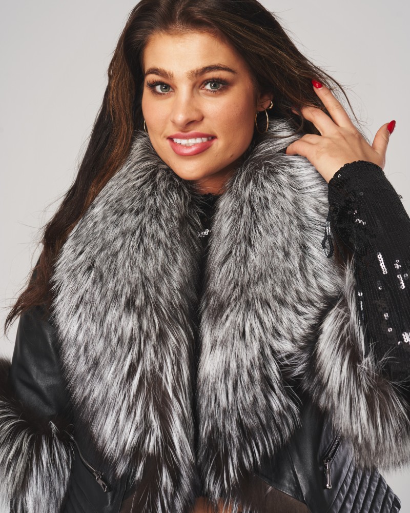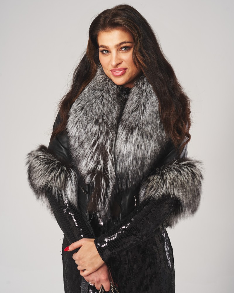 Damen Lederjacken Tatiana sind die ideale Wahl für kühlere Herbst- und Frühlingstage. Das Modell selbst wurde aus natürlichem Lammleder gefertigt, das höchsten Tragekomfort und Langlebigkeit bietet. Das Herzstück bilden Verzierungen aus echtem Fuchsfell am Kragen und an den 3/4-Ärmeln. Dieser exklusive Akzent verleiht dem Design Klasse und einen unverwechselbaren Charakter, der es aus der Masse hervorhebt.