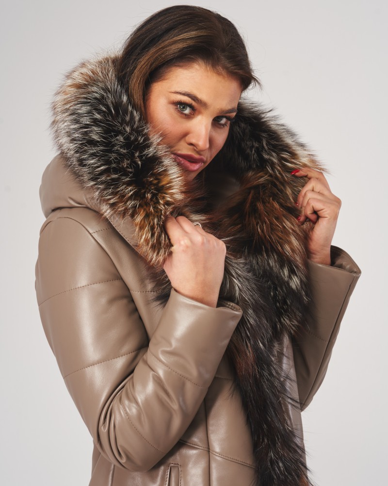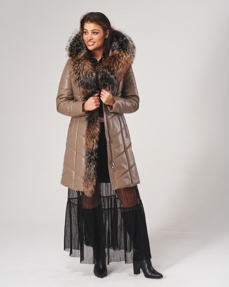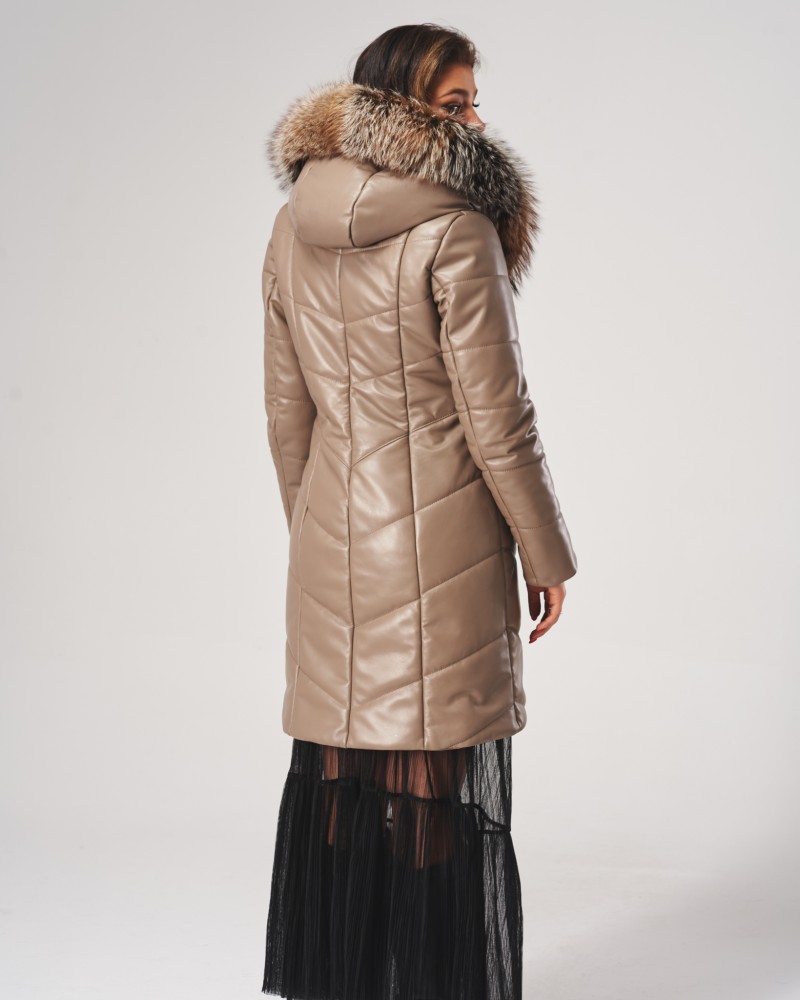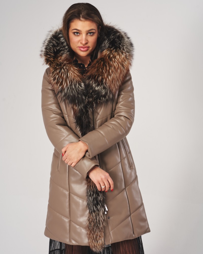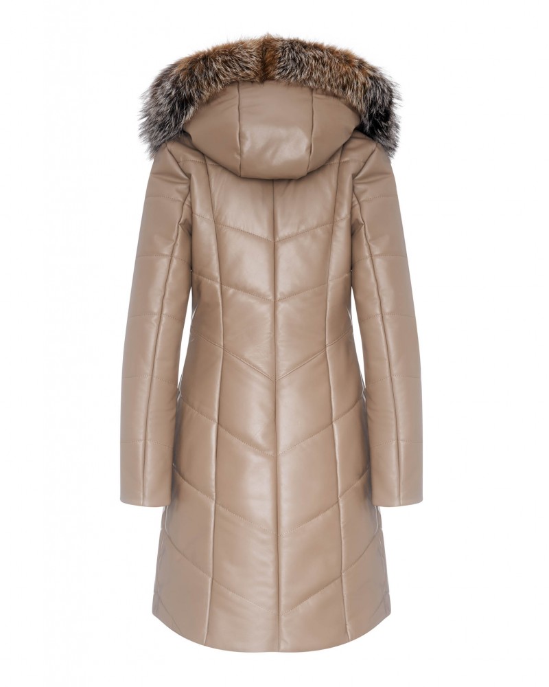Damen Ledermantel Elma wird Frauen gefallen, die von Oberbekleidung mehr erwarten als nur Schutz vor Kälte. Sorgfältig gearbeiteter, gesteppteter Mantel, bietet dank der Verwendung von natürlichem Lammnappaleder nicht nur unvergleichlichen Wärmekomfort, sondern auch außergewöhnlichen Tragekomfort und Langlebigkeit für viele Jahre. Die Bereicherung des Designs mit natürlichem Fuchsfell, das jederzeit abnehmbar ist, erzeugt einen bezaubernden Effekt, der der gesamten Jacke Exklusivität, Eleganz und Klasse verleiht.