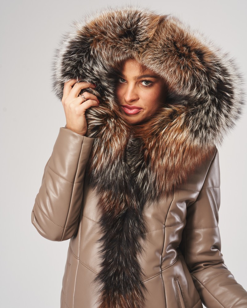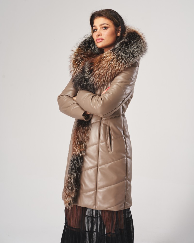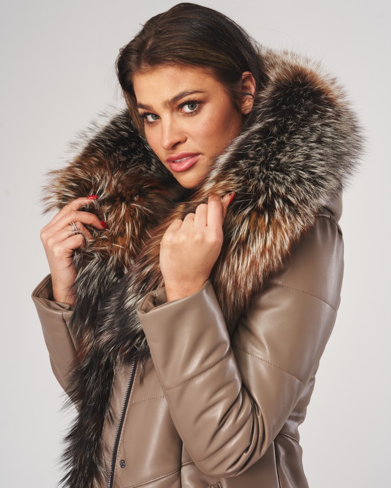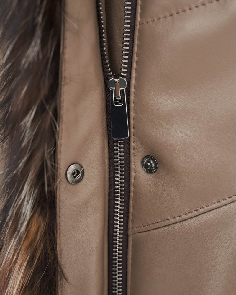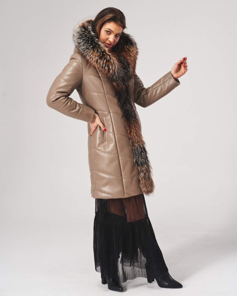 Damen Ledermantel Elma wird Frauen gefallen, die von Oberbekleidung mehr erwarten als nur Schutz vor Kälte. Sorgfältig gearbeiteter, gesteppteter Mantel, bietet dank der Verwendung von natürlichem Lammnappaleder nicht nur unvergleichlichen Wärmekomfort, sondern auch außergewöhnlichen Tragekomfort und Langlebigkeit für viele Jahre. Die Bereicherung des Designs mit natürlichem Fuchsfell, das jederzeit abnehmbar ist, erzeugt einen bezaubernden Effekt, der der gesamten Jacke Exklusivität, Eleganz und Klasse verleiht.