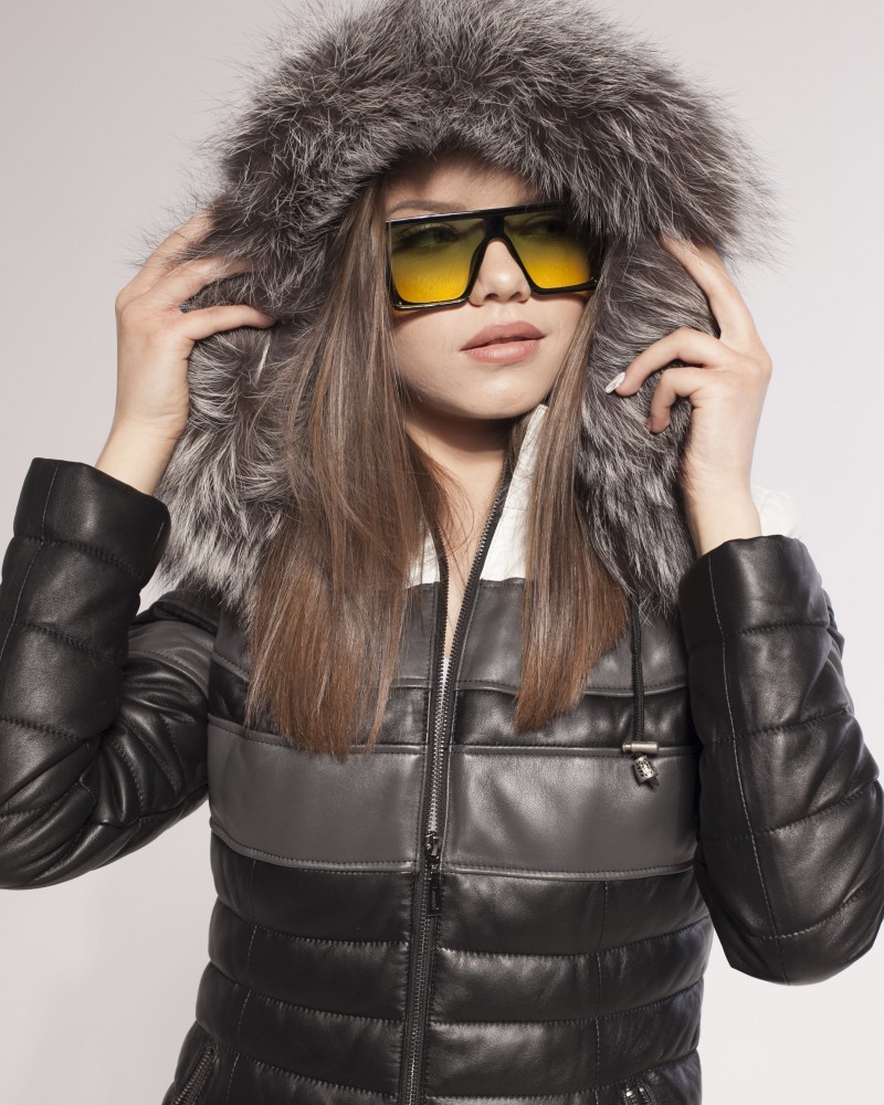 Damen Ledermantel Felicja ist ein außergewöhnliches Design, in dem drei Farbtöne von hochwertigem, glattem, natürlichem Lammleder sensibel kombiniert wurden. Sie schmiegt sich gut an den Körper, bietet gleichzeitig Bewegungsfreiheit und zeichnet sich durch Haltbarkeit sowie Wetterbeständigkeit aus. Die abnehmbare Kapuze, die einen recht hohen Stehkragen umgibt, ist mit natürlichem, weichem Fuchsfell besetzt, in das man sich an richtig kalten Tagen gerne einkuschelt. Die Kapuze kann mit praktischen Bändern reguliert werden, um sie perfekt an die eigenen Bedürfnisse anzupassen.
