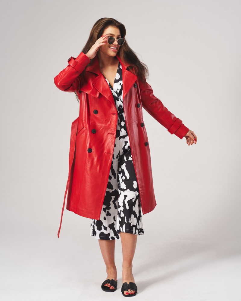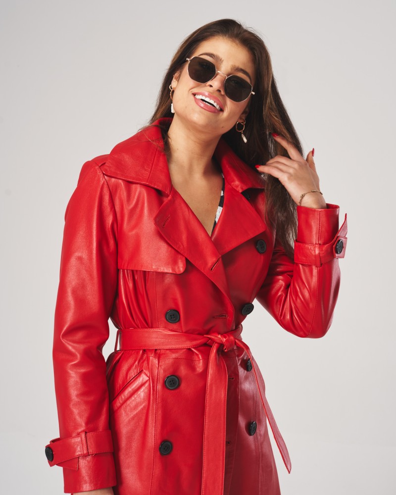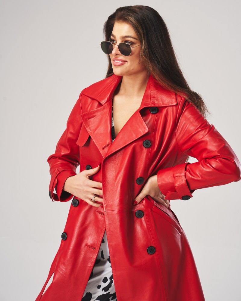 • Die abgebildete Damen Ledermantel ist Rot