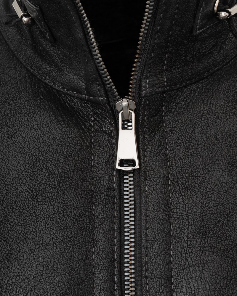 Die Herren Lammfelljacke Magnus verfügt über Einsätze aus Nappaleder, die die Einzigartigkeit dieses Modells betonen. Diese wurden an den Schultern platziert, wodurch diese hervorgehoben werden, am Rücken oberhalb der Taille sowie als Besatz der Taschen. Zwei zierende, subtile Akzente auf der Vorderseite unterstreichen die Besonderheit dieses Modells. Ergänzungen in Form kleiner, rostfreier Metallelemente heben die ästhetischen Vorzüge des Modells positiv hervor.